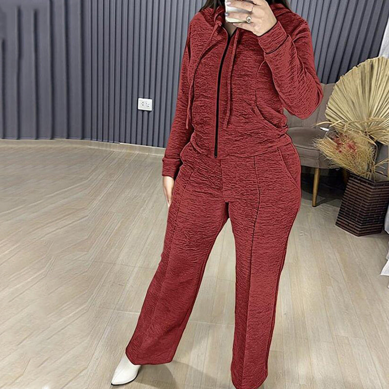 AVSLAPPNAD ELEGANS I VARJE RÖRELSE – Frihet möter femininitet. Den lösa jackan och de flödande byxorna med vida ben faller vackert och skapar en naturligt smickrande silhuett som förlänger figuren. Designen med huva ger en subtil sportig touch.